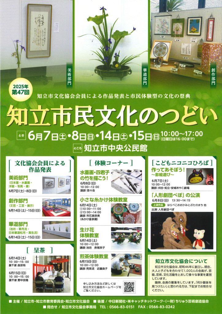 第47回知立市民文化のつどい 今週は創作部門展・茶華道部門展を開催します♪