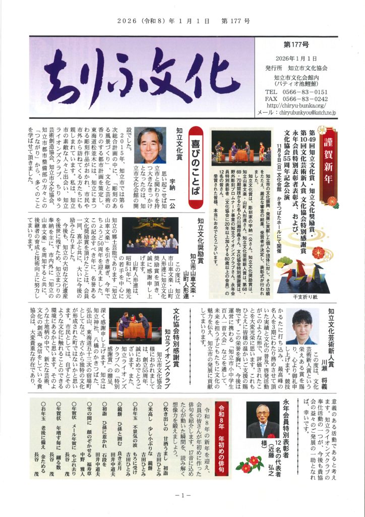 会報「ちりふ文化」177号(令和8年1月1日号)が年末に出来上がり、配布が始まっています。
